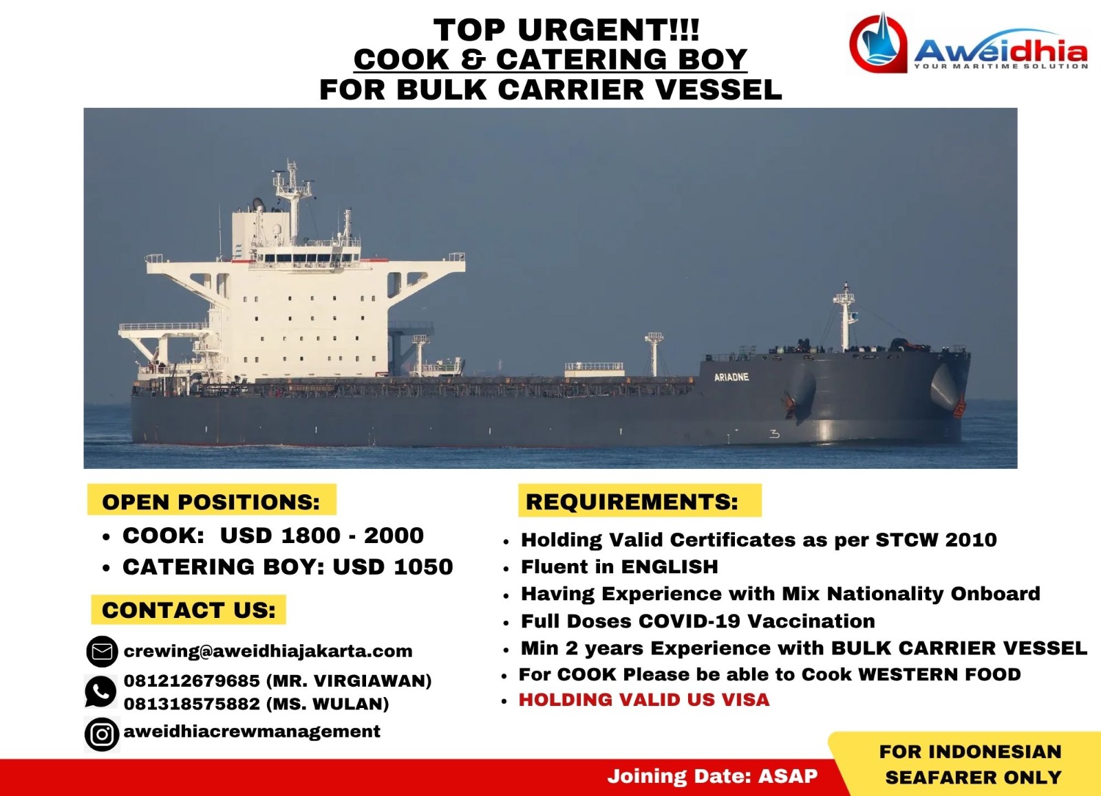🛳️ Crew for Bulk Carrier Vessel (Top Urgent)