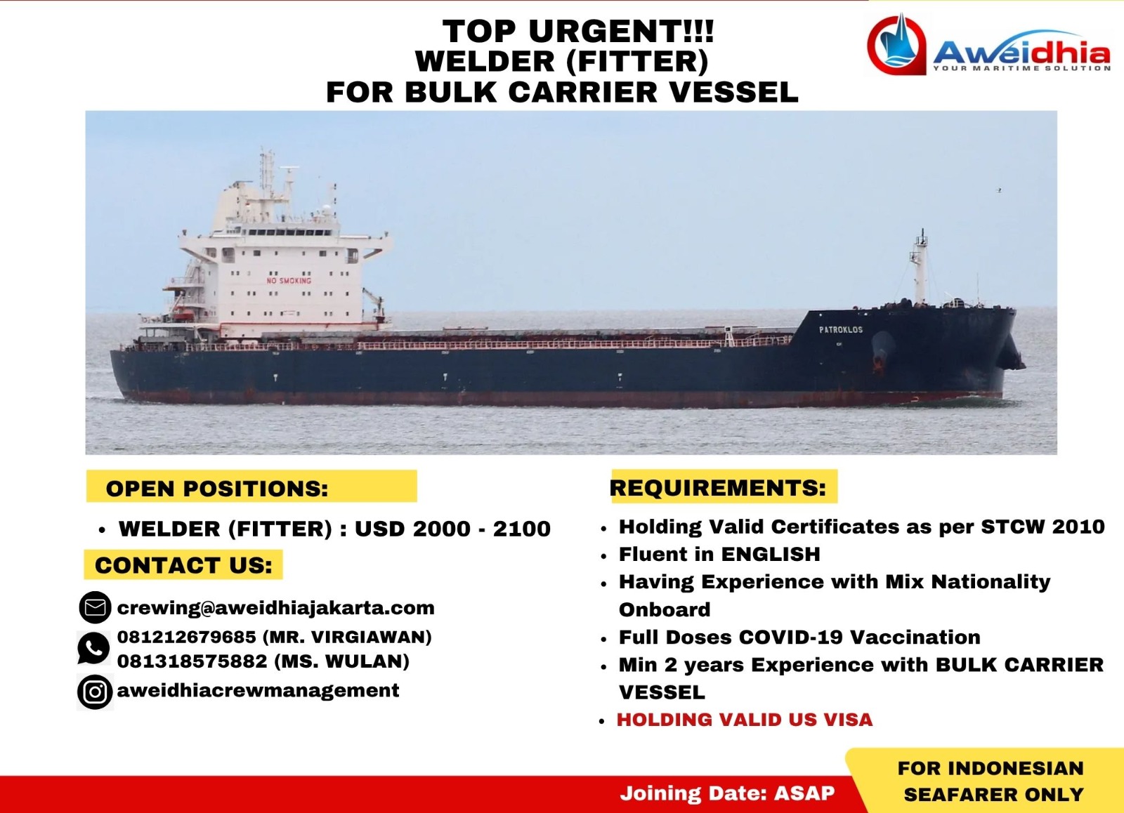 🛳️ Crew for Bulk Carrier Vessel (Top Urgent)